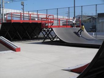 幹線道路に挟まれたロケーションが、この公園のアクティブなキャラクターに合っている。小学生のスケーターたちが、学校終わりで駆けつけて練習にいそしんでいる。